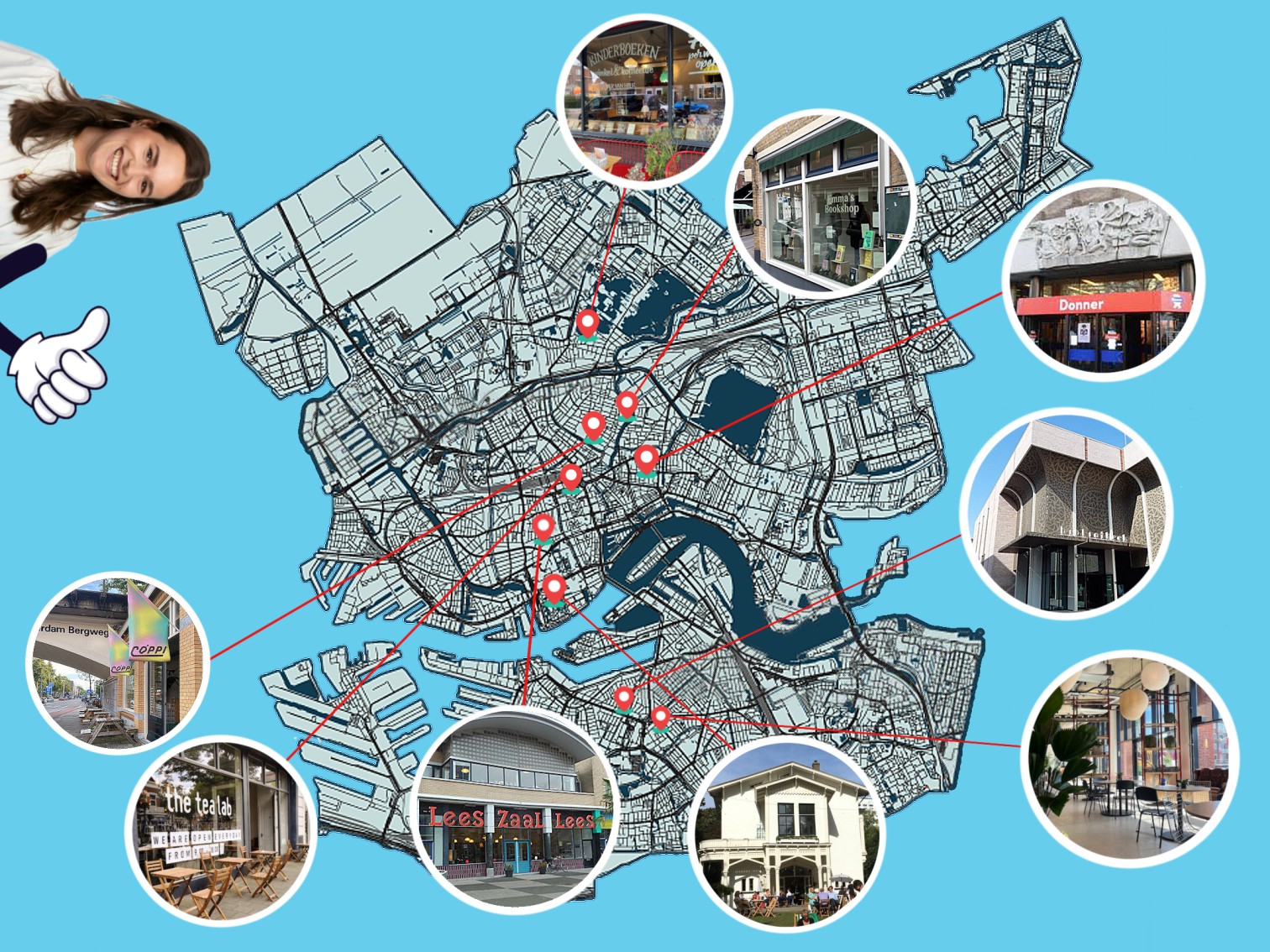 Kom, we gaan door naar Rotterdam-West. Eerst komen we langs de Leeszaal. Dit is geen gewone bieb, maar een bewonersinitiatief. Je kunt er boeken brengen en halen. Er staan kasten vol tweedehandsboeken. Je hebt er fijne leesplekken en er is betaalbare koffie en thee. Het voelt als een soort huiskamer. Leuk toch?